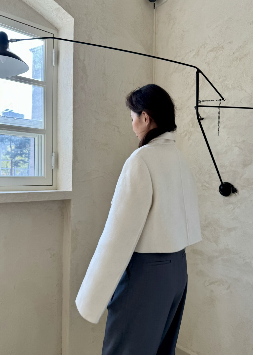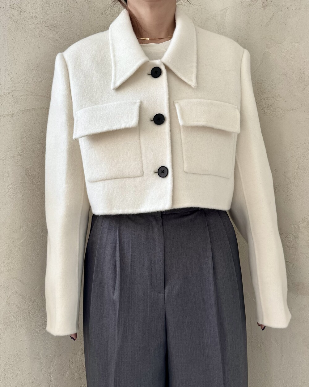 카라 디자인도 포인트. 뽀족한 실루엣이 너무 유니크해요.