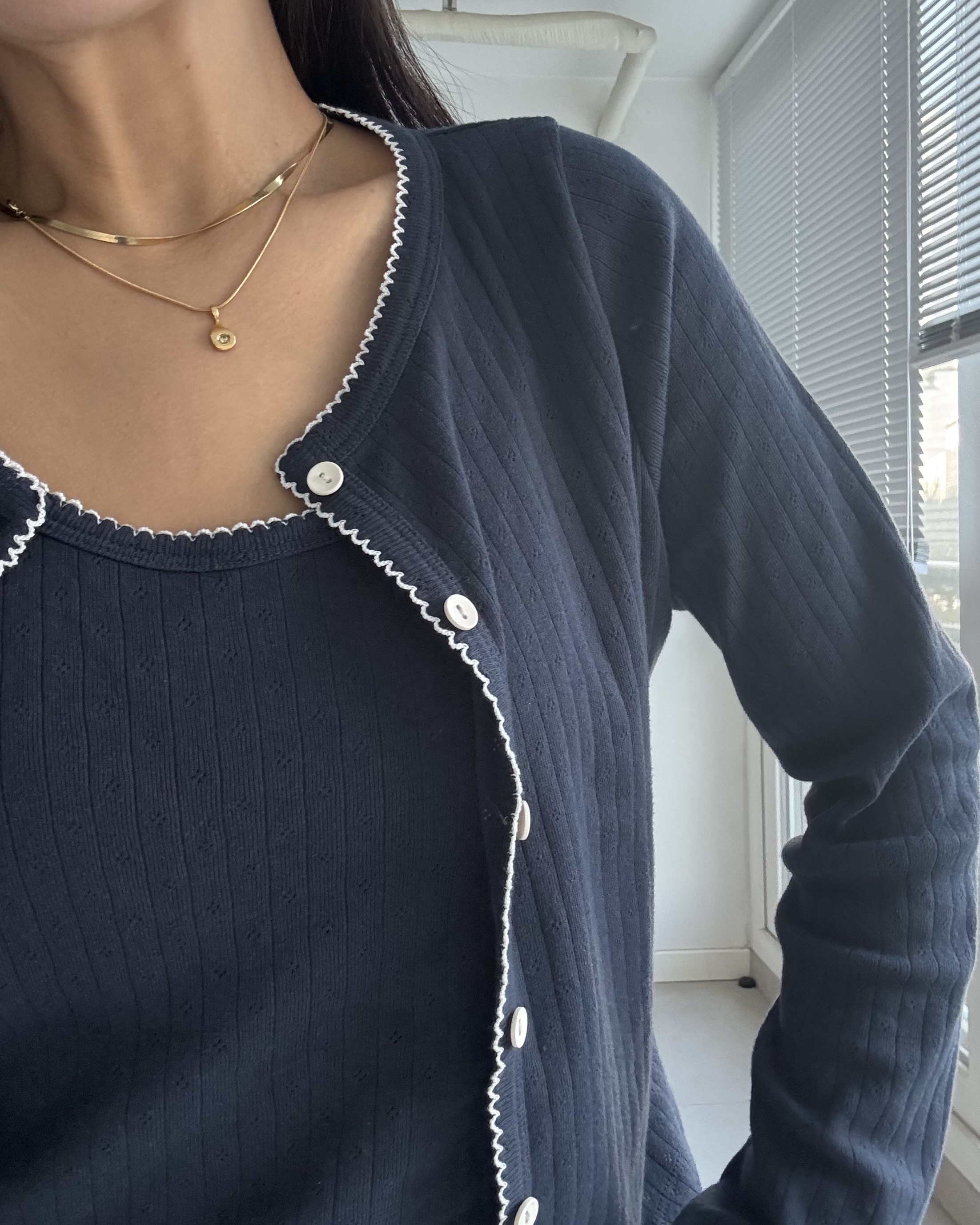아일렛 펀칭 가디건 세트