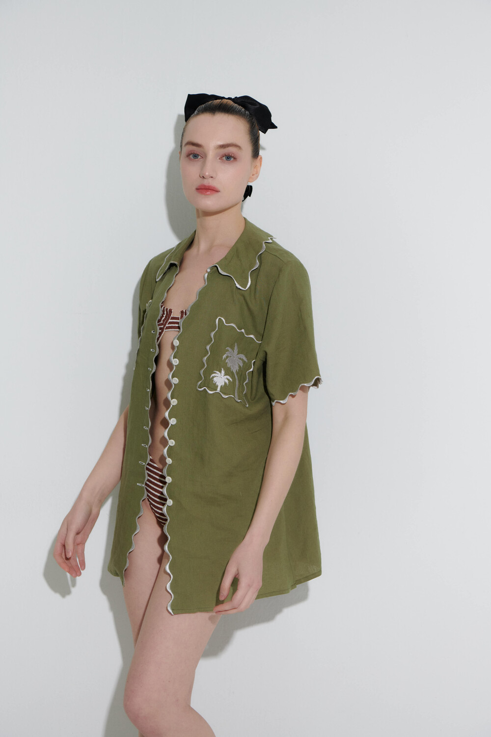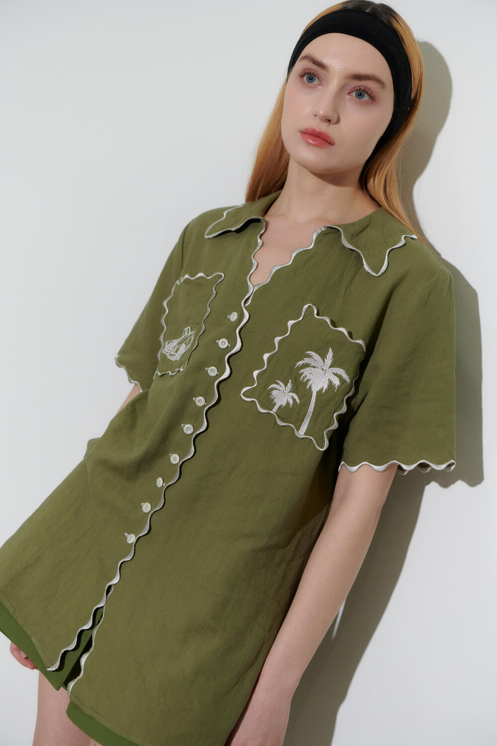 고퀄 자수 린넨 셔츠